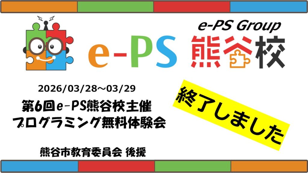 本年も毎年恒例のプログラミング第6回無料親子体験会を熊谷市教育委員会後援のもと開催することになりました。