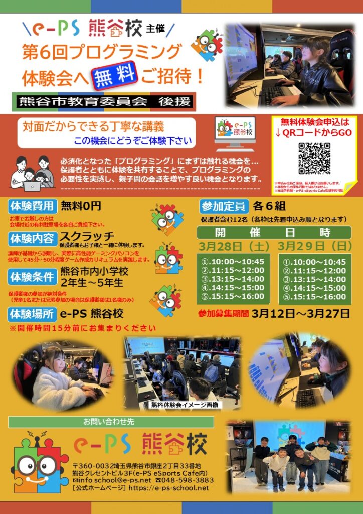 熊谷市教育委員会後援プログラミング第6回無料親子体験会開催のお知らせ!